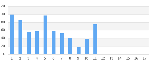 Ø Platzierung 31.9090909091 Ø Punkte 1369.18181818