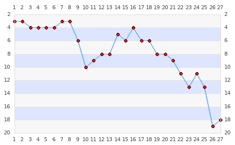 Ø Platzierung 31.9090909091 Ø Punkte 1369.18181818